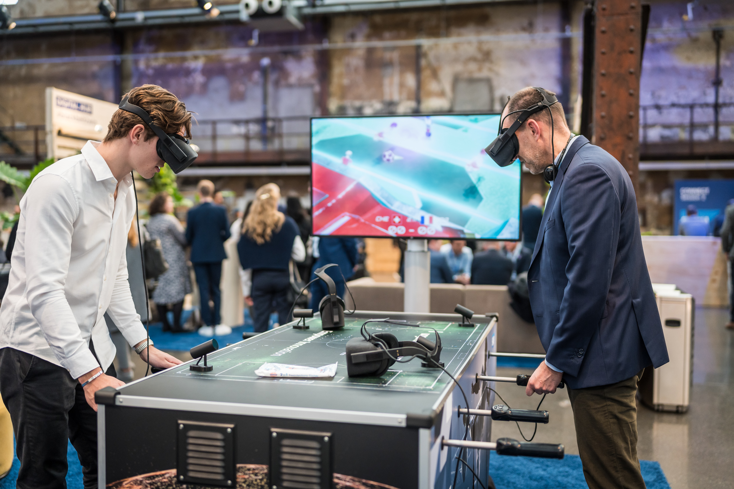 Das Thema Sport? Allgegenwärtig. Kinexon präsentierte beim Torwandschießen ihre Chiptechnologie, die auch in den Bällen für die Fifa-Veranstaltungen enthalten ist, und in der Power Innovation Lounge konnte man beim VR-Showcase seine Tischkicker-Kompetenzen unter Beweis stellen.
