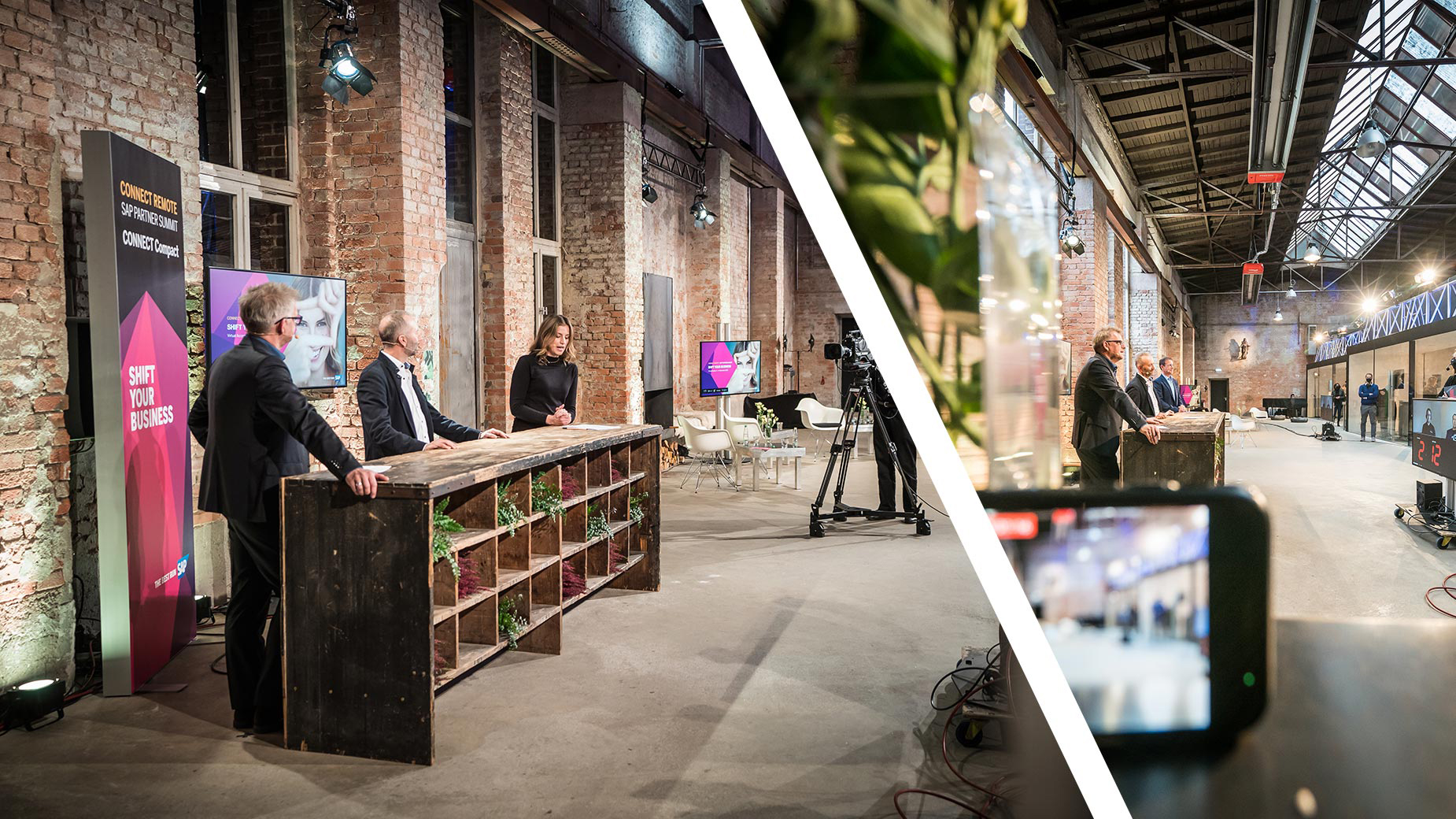 Doch auch ein virtuelles Event lebt von Live-Momenten: Diese haben wir – selbstverständlich streng Corona-konform – in einem Studio unseres Digital Habitat – im Betriebswerk in Heidelberg – realisiert.